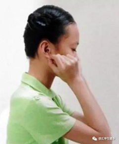 要领:先以左右食指与中指并拢,放在靠近鼻翼两侧,大拇指支撑在下腭骨凹陷处,然后放下中指,