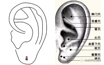 定位:耳垂眼穴位于耳垂中心位置。