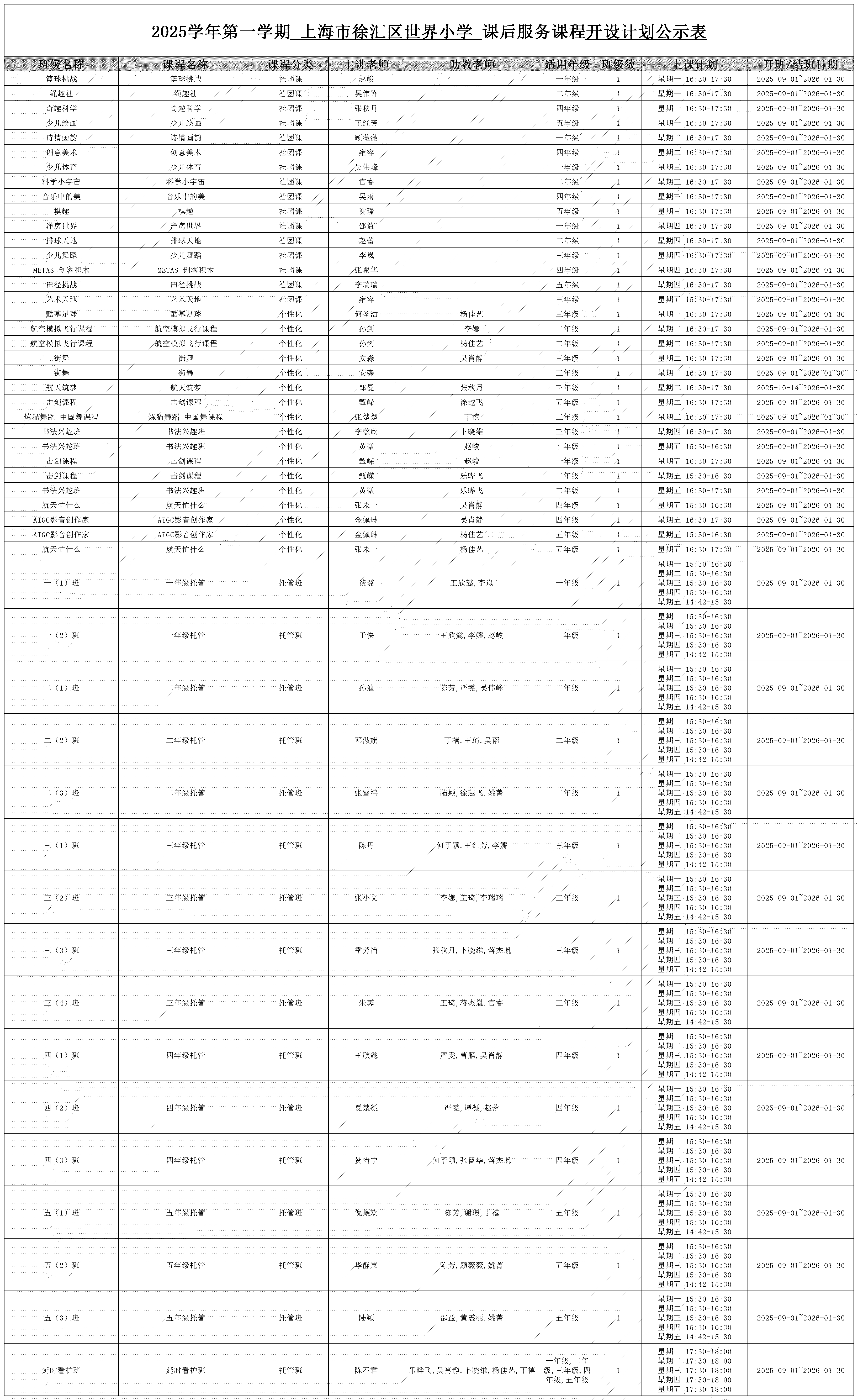 2025学年第一学期 上海市徐汇区世界小学 课后服务课程开设计划公示表