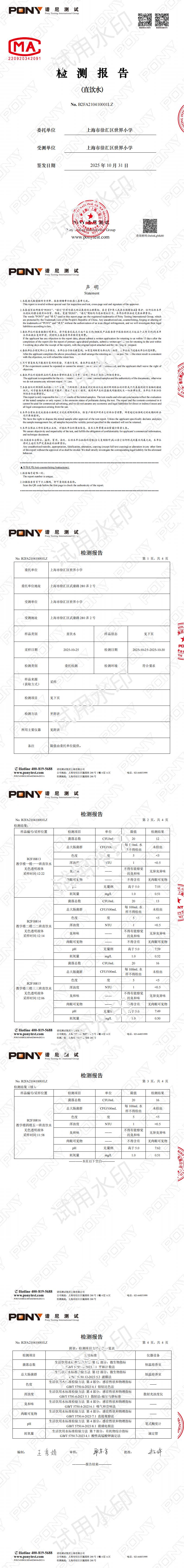 2025学年第一学期10月直饮水检测报告