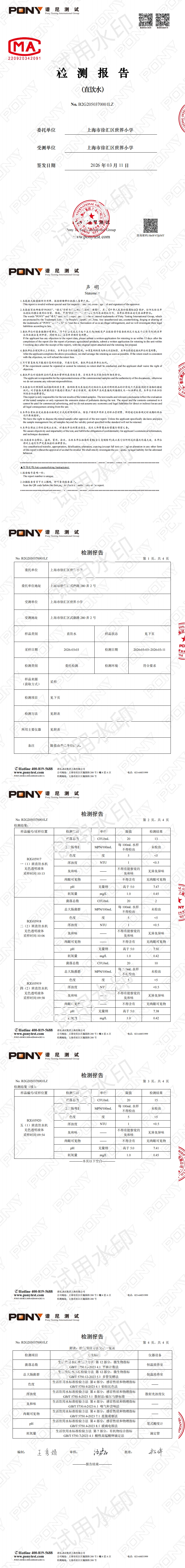 2024学年第二学期4月直饮水检测报告